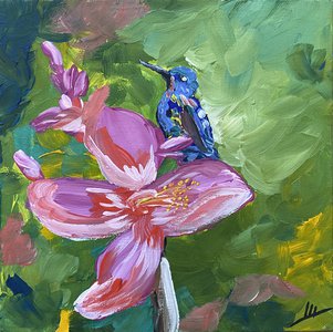 Розы с птичкой